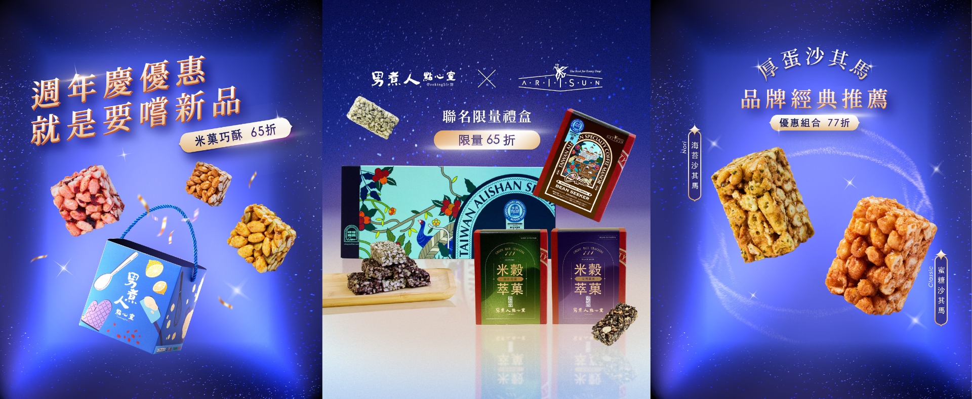迎來品牌三週年,【男煮人點心室】以誠意回饋支持者,推出全新代表作 —— 米菓巧酥系列。