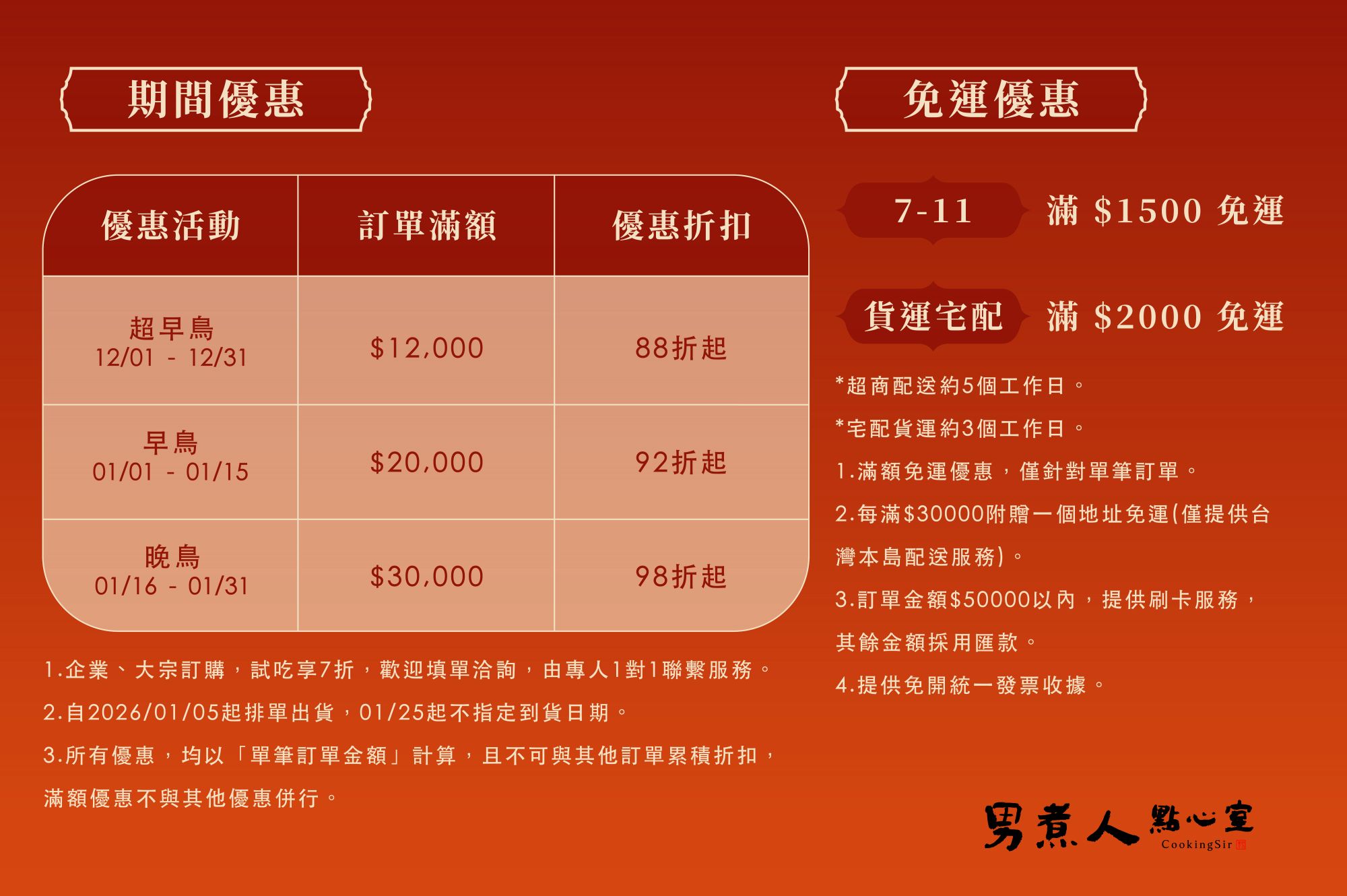 ■ 早鳥 | 滿 $20,000 享 92 折(01/01–01/15)