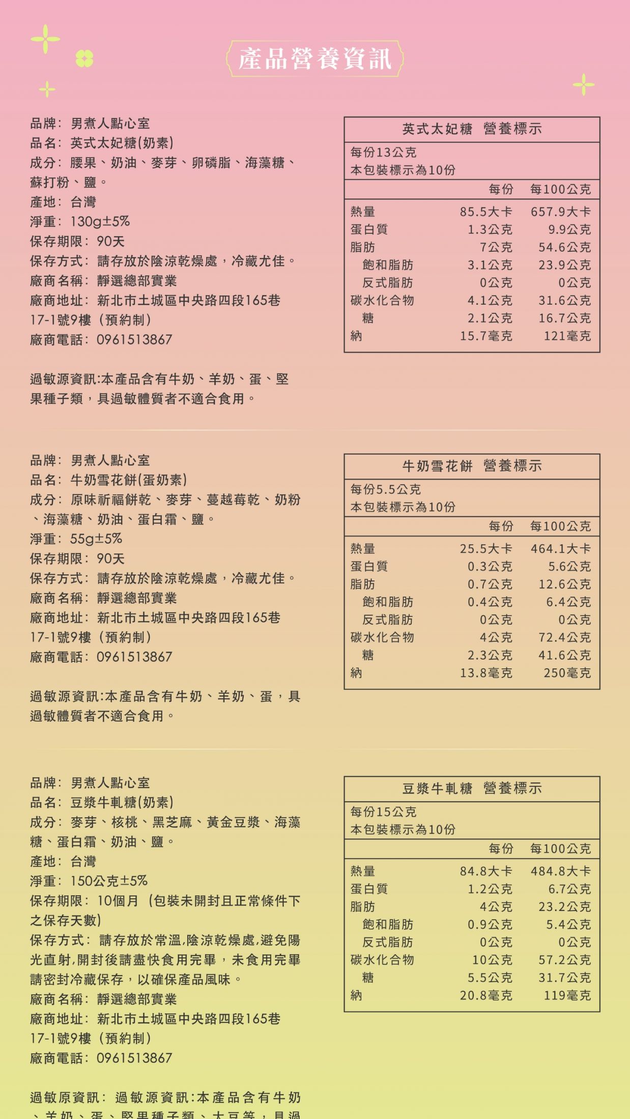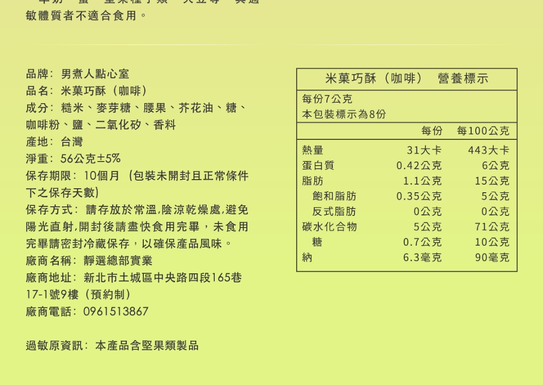 過敏源資訊: 本產品含有牛奶、羊奶、蛋、堅果種子類,具過敏體質者不適合食用。