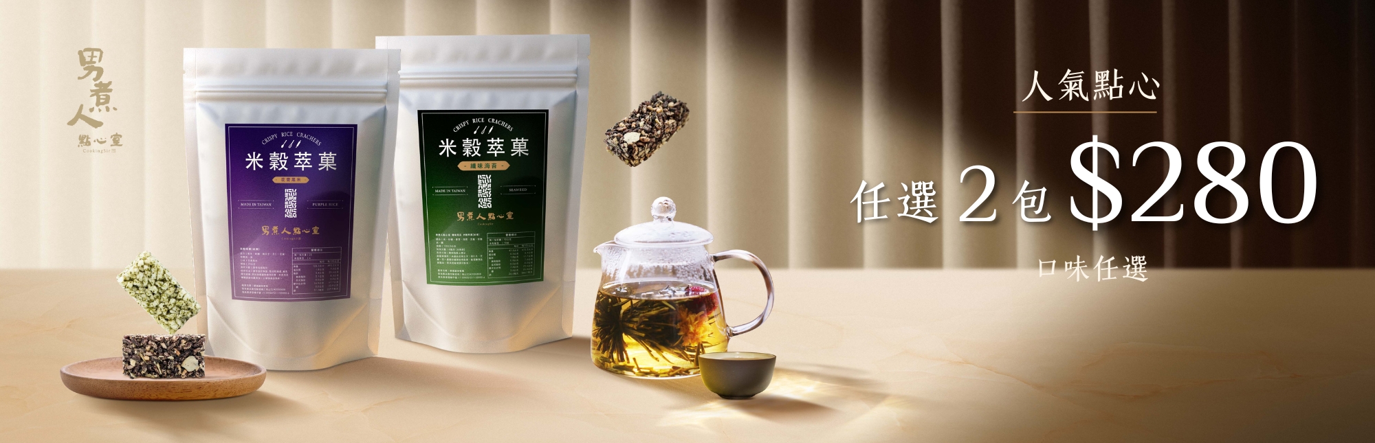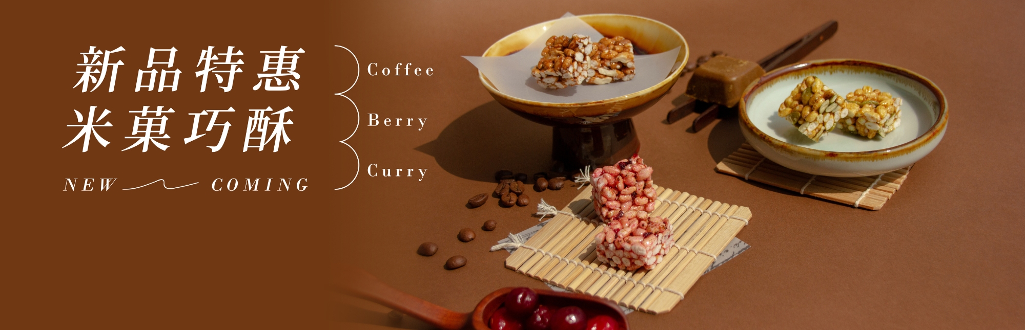 慶祝男煮人點心室三週年,全新「米菓巧酥」系列同步上市!以台灣糙米為底,結合手作工藝與三款獨家風味——咖啡、野莓、咖喱,打造外酥內鬆的幸福滋味。