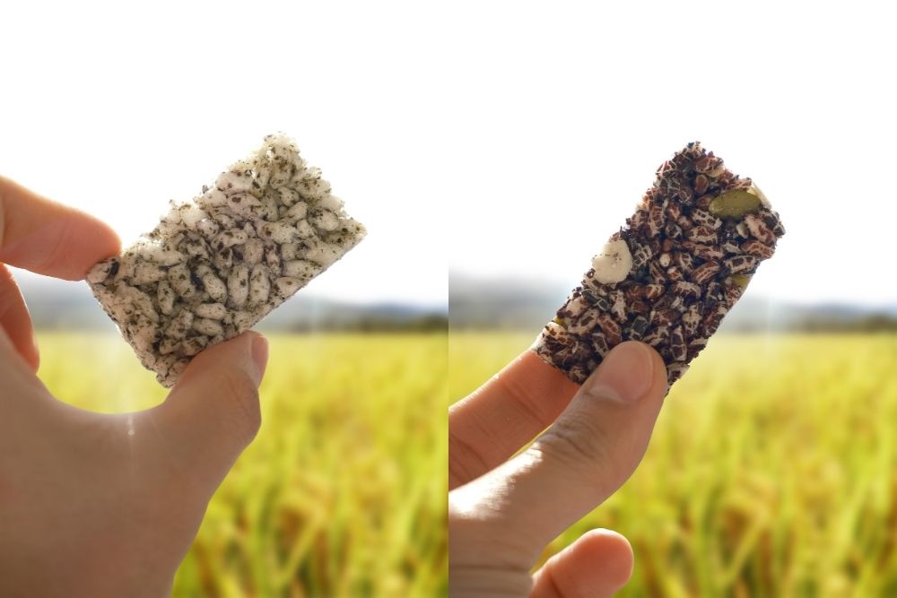 ( 米穀萃菓 纖味海苔(左) / 米穀萃菓 花青黑米(右) )