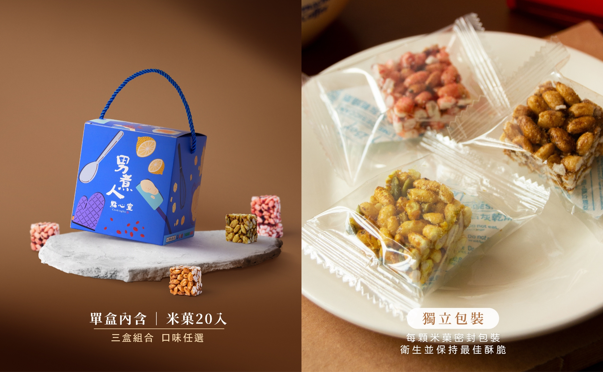 迎來品牌三週年,【男煮人點心室】以誠意回饋支持者,推出全新代表作 —— 米菓巧酥系列。