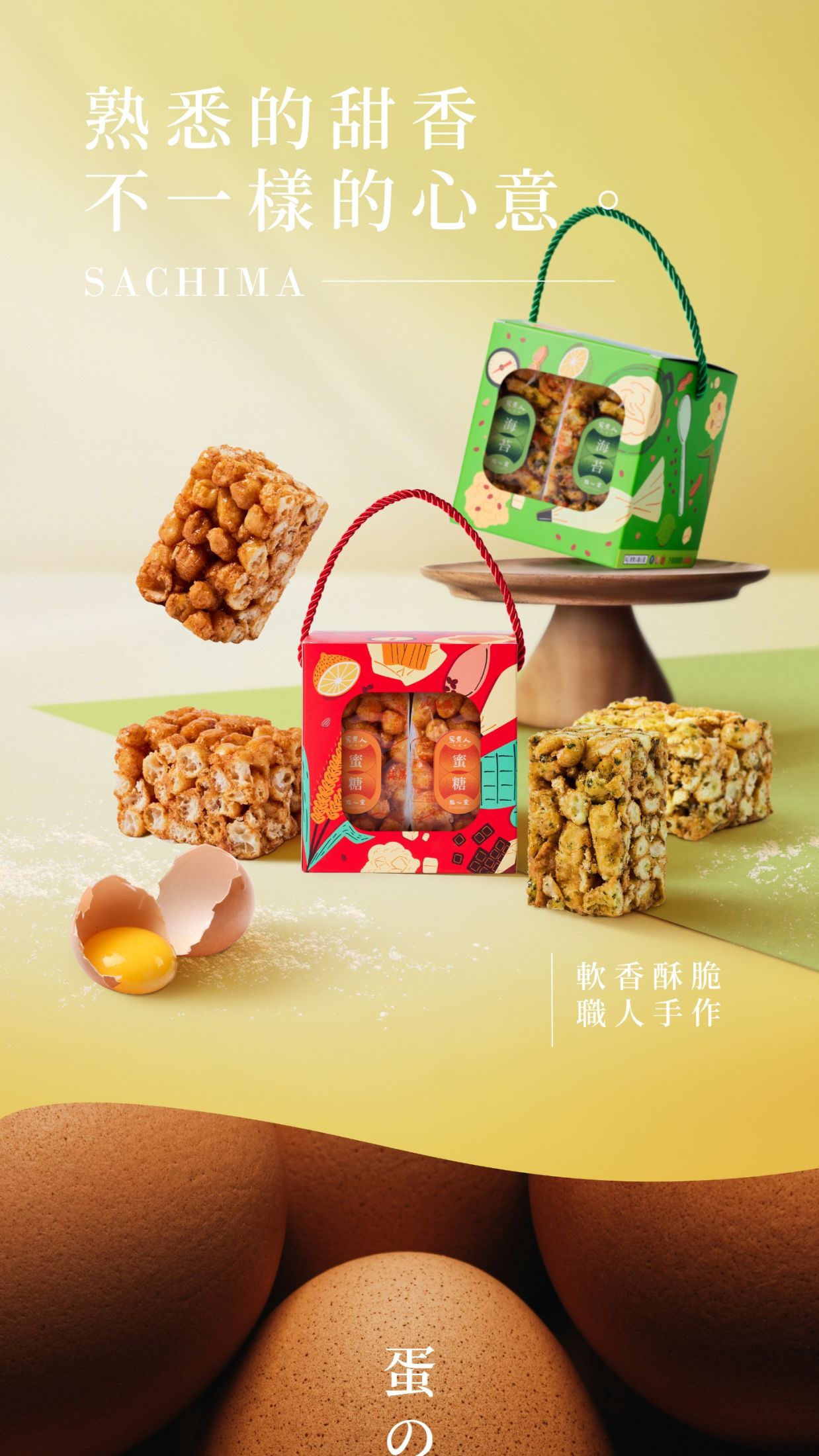 男煮人點心室「紅盒-御膳糕點系列」中,廣受全齡饕客喜愛的經典沙其馬,在煮理人歷經長時間將配方優化,並調整製程順序後,旗下全新升級的「厚蛋沙其馬」,終於出爐與您同饗囉!