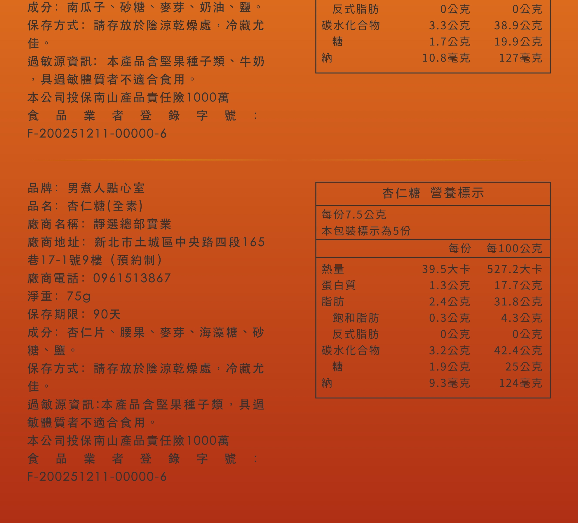 食品業者登錄字號:F-200251211-00000-6